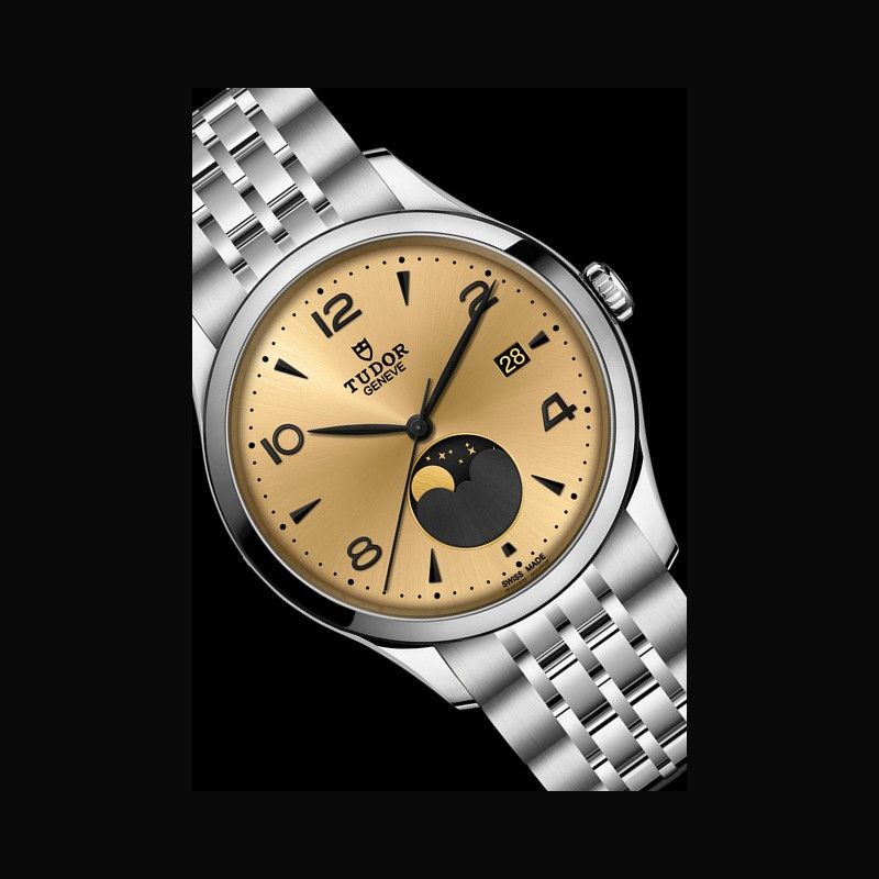 Dans la mythologie romaine, la déesse Luna personnifie la beauté divine et le mystère fascinant de la lune. La plupart des années comptent 12 pleines lunes qui nʼapparaissent quʼune seule fois par cycle lunaire de 29,5 jours approximativement. Notre calendrier nʼy correspondant pas parfaitement, certaines années peuvent compter 13 pleines lunes. Cʼest ce qui rend la complication « phase de lune » si poétique – la TUDOR 1926 Luna mesure nos journées de 24 heures à la seconde près, tout en permettant de suivre un cycle totalement différent, celui de notre satellite naturel. Il est ainsi possible de connaître lʼheure... mais aussi le moment où les loups-garous font leur apparition.