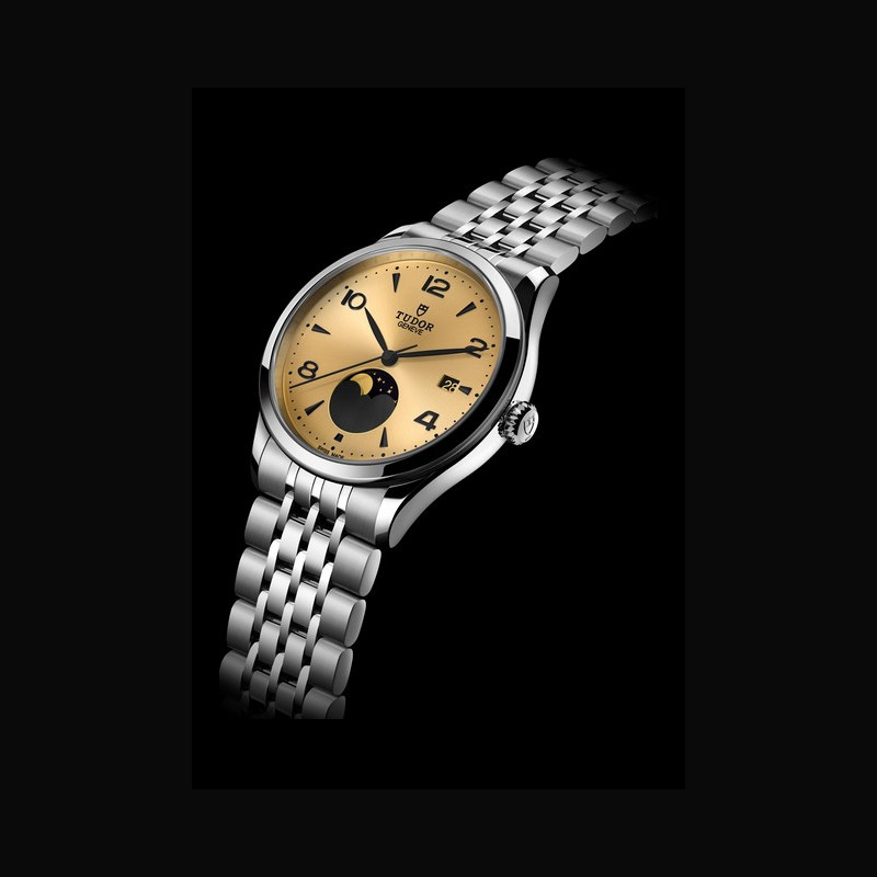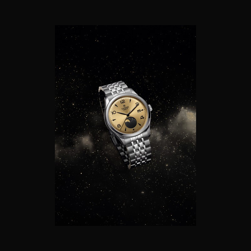 Ce dernier a en effet été matérialisé de manière envoûtante par lʼambassadeur de TUDOR, son délicat disque doré représentant la lune sʼeffaçant derrière une découpe noire, égrenant au fil des jours les mouvements que la lune effectue dans les cieux.