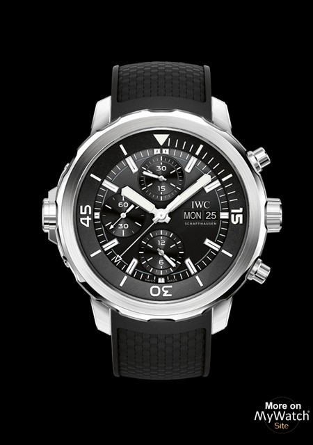 | Plus de caractéristiques : | Mouvement Calibre 30120 Fréquence : 28 800 A/h / 4 Hz Rubis : 25 Réserve de marche : 44 h Caractéristiques Muvement de chronographe mécanique Lunettes tournantes mécaniques externe et interne avec système SafeDive d’IWC Affichage de la date et du jour de la semaine Fonction stop heure. minute et seconde Petite seconde avec dispositif d’arrêt Éléments luminescents sur les aiguilles. le cadran et la lunette tournante interne Système breveté IWC de bracelet interchangeable Boîtier en acier fin Verre saphir bombé. antireflet sur les deux faces Bracelet en caoutchouc noir. boucle ardillon en acier fin |