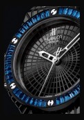| Particularité du boitier : | Fond saphir Lunette en or gris PVD noir sertie de 48 saphirs bleus baguette |