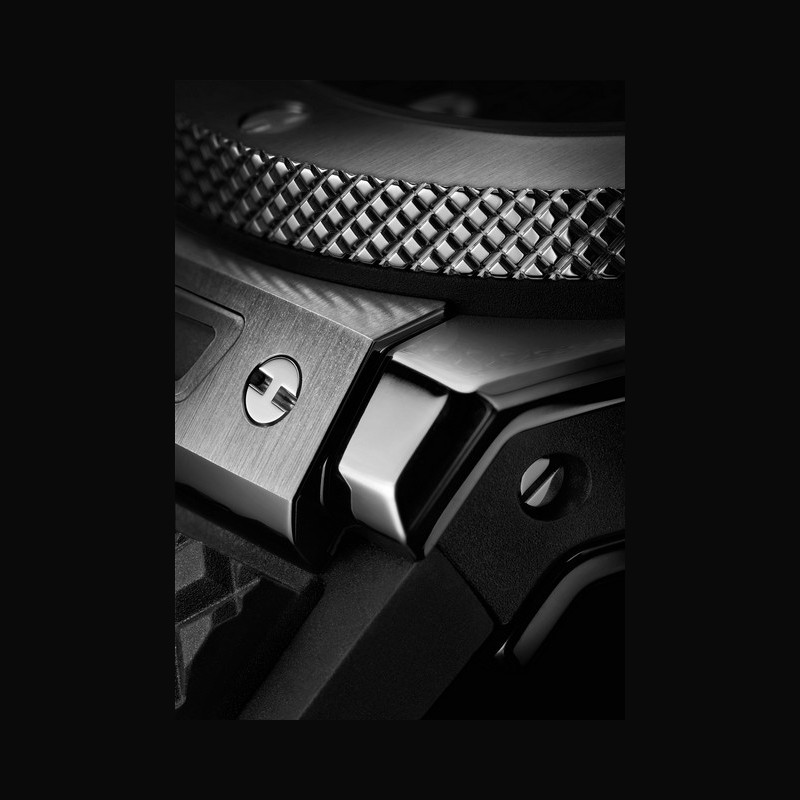 | Particularité du boitier : | Fond de boîtier titane satiné Lunette Titane poli et satiné avec motif structuré sur le côté 6 vis en titane en forme de H |
