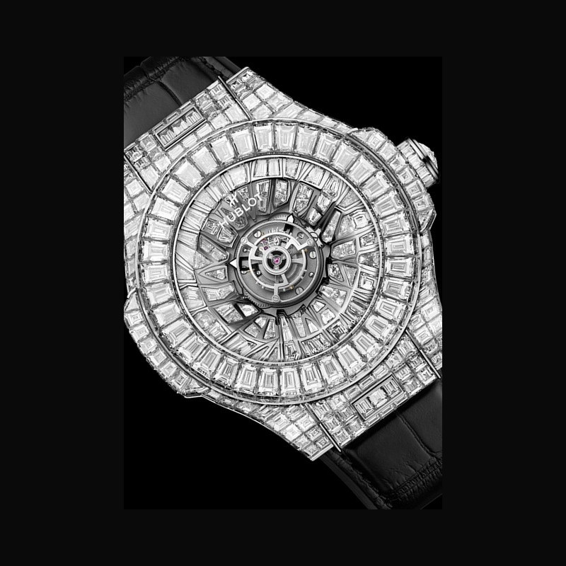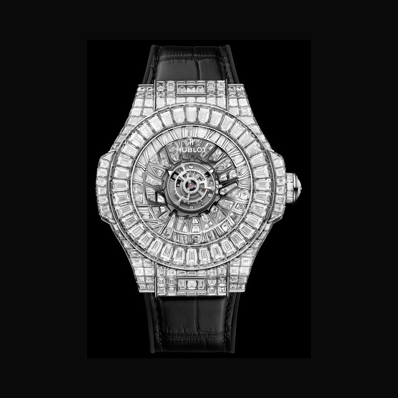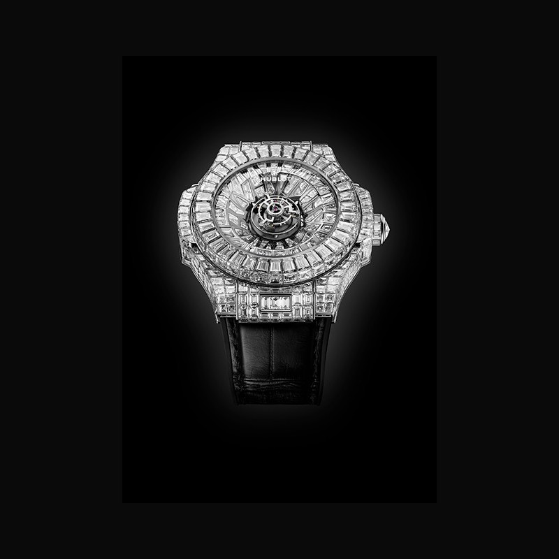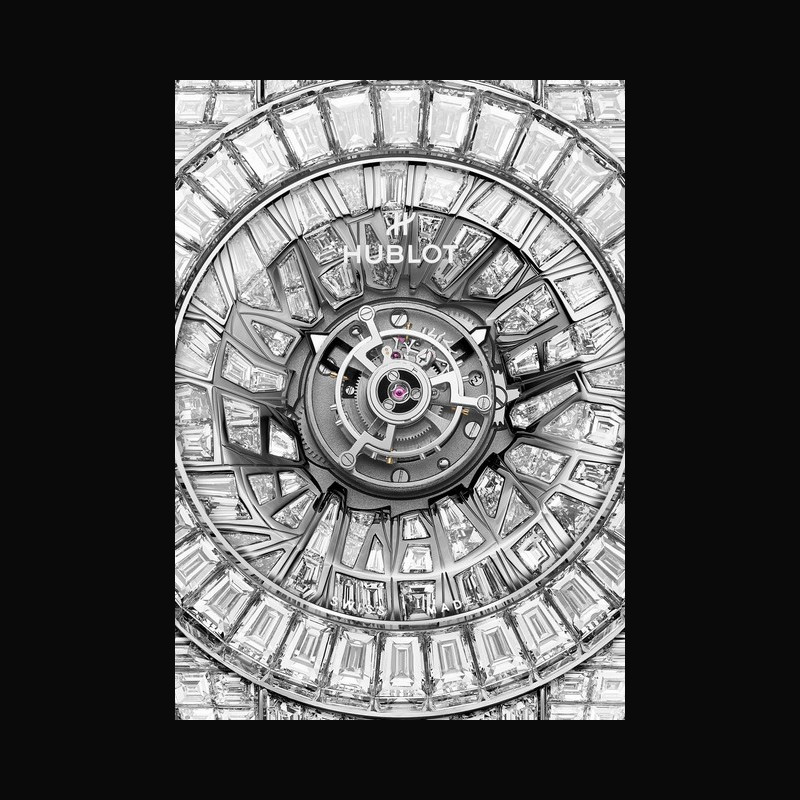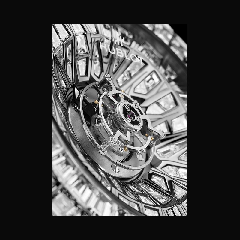 $ Big Bang de 2007 jusqu'aux créations spectaculaires comme la Black Caviar Bang, la Big Bang Unico Haute Joaillerie, la Big Bang Tourbillon à 3 millions de dollars ou encore la montre à 5 millions de dollars, Hublot n'a cessé d'explorer les sommets de la Haute Joaillerie horlogère. La Big Bang Impact One Million poursuit cet héritage avec une approche résolument contemporaine. Le sertissage alterne diamants baguette et diamants taille fantaisie dans des compositions rayonnantes articulées autour du tourbillon. Les techniques de sertissage invisible et de sertissage clos se combinent pour créer un relief tridimensionnel spectaculaire. Une déclaration audacieuse rendue possible par la maîtrise des matériaux et l'innovation constante de Hublot.