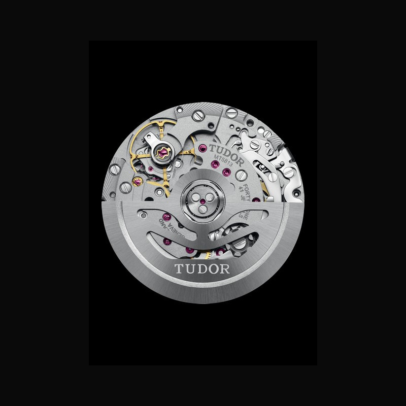 Bénéficiant d’une réserve de marche de 70 heures, d’un spiral en silicium et certifié par le Contrôle Officiel Suisse des Chronomètres, le Calibre Manufacture chronographe MT5813 qui équipe le modèle Black Bay Chrono S&G est un mouvement de haute performance. Il a été conçu dans la plus pure tradition horlogère, avec un mécanisme de roue à colonnes et un embrayage vertical. Conforme à la philosophie de qualité de TUDOR, il présente une robustesse et une fiabilité hors-normes, garanties par une batterie de tests extrêmes, tels qu’appliqués à tous les produits de la marque. Dérivé du calibre manufacture chronographe Breitling 01, avec un organe réglant de haute précision développé par TUDOR et des finitions dédiées, ce mouvement est issu d’une collaboration durable entre les deux marques. Elles ont choisi de mutualiser leurs savoir-faire en matière de conception et de fabrication de certains mouvements mécaniques, et de les mettre en usage commun.