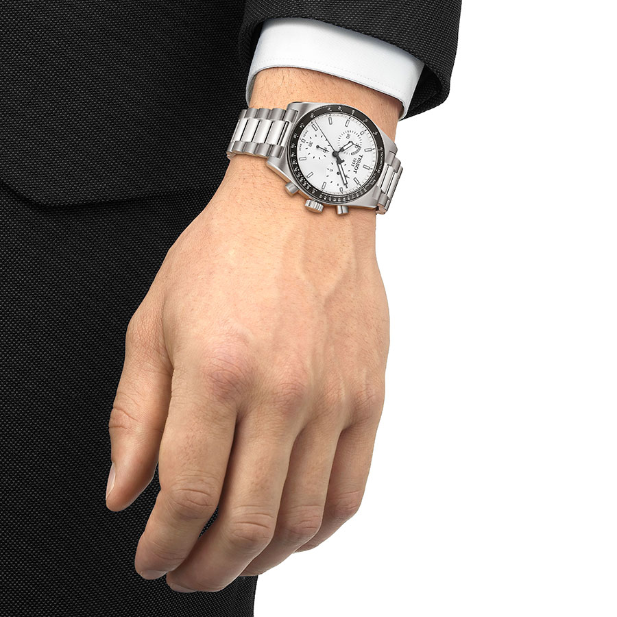 Côté fonctions, le chronographe affiche une mesure au 1/10e de seconde, un compteur 30 minutes et une petite seconde. Les aiguilles et les index, généralement recouverts de Super-LumiNova®, assurent une lisibilité optimale en conditions nocturnes. Le mouvement quartz intègre par ailleurs la fonction EOL (End of Life), signalant la fin de vie de la pile afin d’éviter toute interruption imprévue (saut de la trotteuse toutes les 4 secondes).