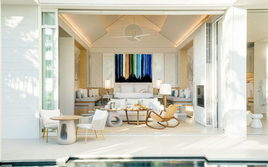 Ce répertoire est complété par 700 mètres de plage déserte, quatre piscines communes, un simulateur de vague pour s’initier au surf, des courts de tennis, un autre de padel, un domaine de 1 500 m² réservé aux bambins, un choix de tables à ravir tous les palais, italien, japonais, méditerranéen, international pieds dans le sable et gastronomique (le 1947 qui intègre une exceptionnelle cave à vins forte de 530 références)…