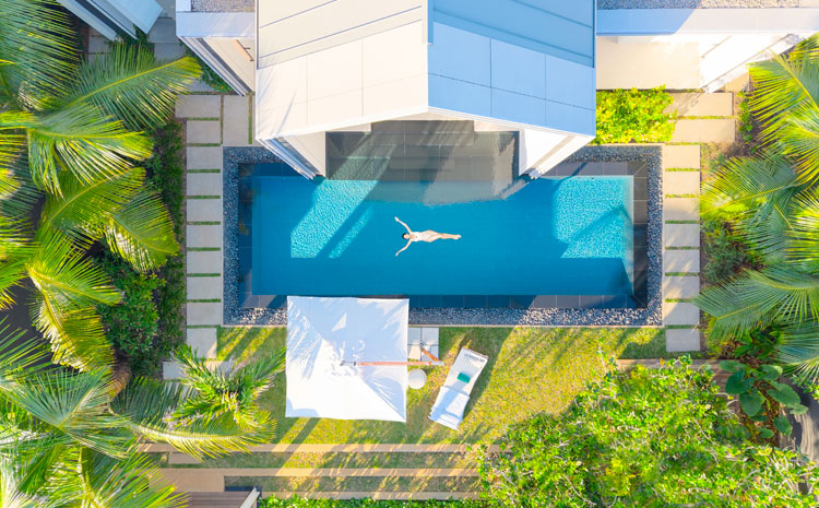 On le sait, pour vivre heureux… Alors, destination la planque la plus secrète de l’océan Indien. Un vaste domaine clos (22 hectares), pieds dans l’eau et vue grand large, des habitations à rester œil rond et un service hôtelier qui ne vise pas le luxe mais l’excellence. Ce bonheur est signé Cheval Blanc.