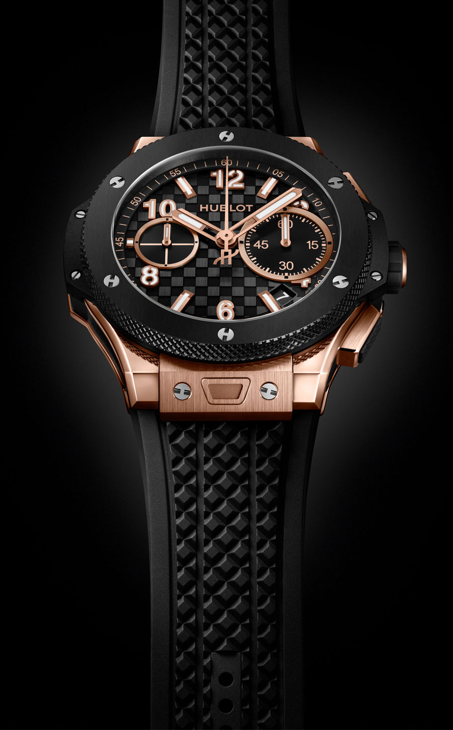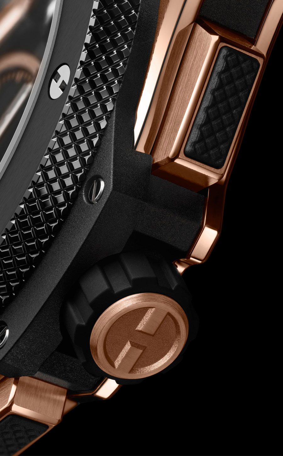 - King Gold Ceramic, un alliage exclusif d’or rose 18 carats, titane et céramique noire, démonstration ultime de savoir-faire et de technicité.