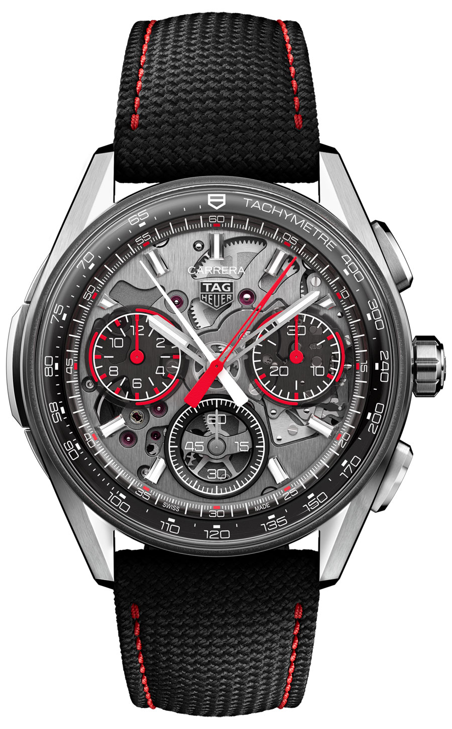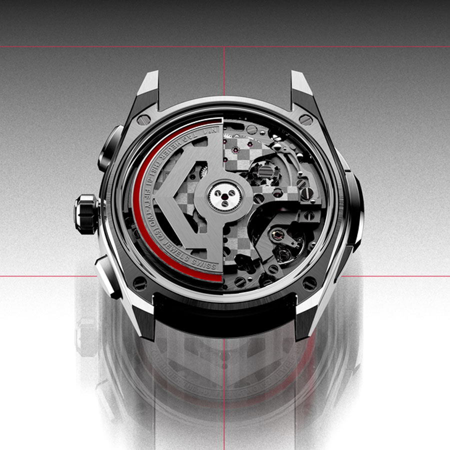 Le calibre automatique, baptisé TH20-01, anime ce trio d’acier : réserve de marche de 80 heures, embrayage vertical pour un engagement fluide, roue à colonnes pour un déclenchement précis et remontage automatique bidirectionnel. Le fond en verre saphir dévoile la géométrie complexe du mouvement.