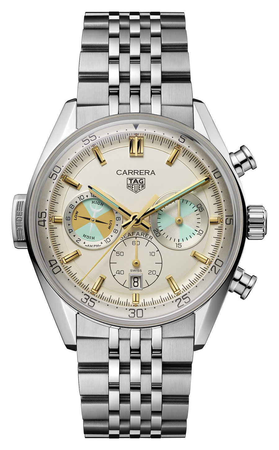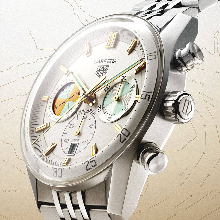 Soixante-dix-sept ans après sa première apparition, l’indicateur de marée effectue un retour remarqué au poignet avec la Carrera Chronograph Seafarer. TAG Heuer ne se contente pas de ressusciter un nom emblématique : la marque réactive une complication aussi rare que fonctionnelle, intimement liée à l’histoire de la navigation.