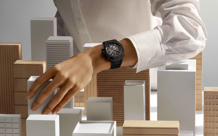 La céramique, choisie autant pour ses qualités techniques, confère à la montre une sensation étonnante de légèreté et de douceur au poignet. Teintée dans la masse, sa couleur noire profonde sublime le jeu de facettes du boîtier et du bracelet intégré. L’ensemble évoque un objet sculpté, pensé pour accompagner une vie en mouvement.