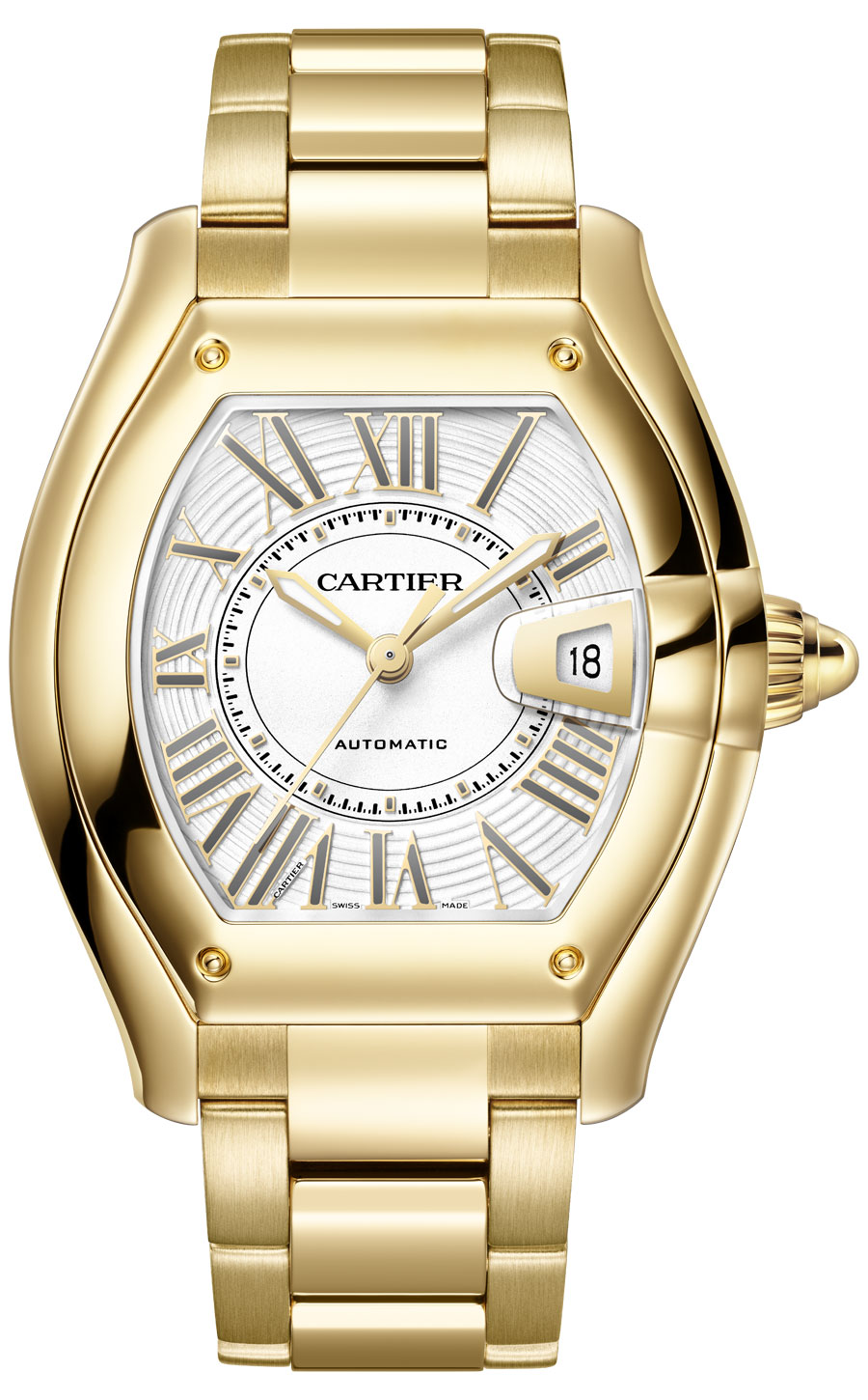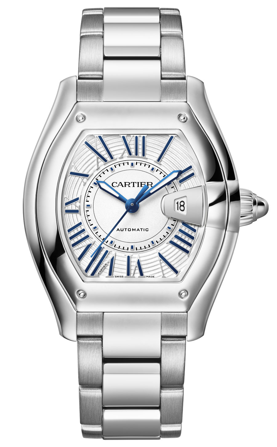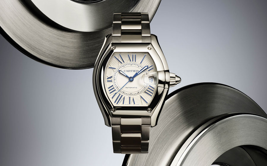 Sous les feux des projecteurs, la Roadster revient sur le devant de la scène en conservant une construction centrée sur une boîte de forme ogivale, dont les proportions ont été revues afin d’améliorer l’ergonomie sans modifier l’architecture d’origine. Le travail porte sur l’intégration de la couronne, désormais inscrite dans la continuité de la lunette et de la carrure. L’ensemble forme un volume continu, renforcé par l’interaction entre la glace, la loupe du quantième et le cadran. La lunette est structurée par quatre rivets, tandis que la loupe de date conserve une forme spécifique, directement intégrée au dessin global. Le cadran reprend les codes existants : motif strié circulaire, chemin de fer et chiffres romains. Les évolutions concernent les procédés de fabrication, avec un effet de relief obtenu par étampage, complété par des index vernis et un chemin de fer décalqué. Sur ces deux versions automatiques en acier et en or jaune, les aiguilles glaive luminescentes sont proposées respectivement en finition bleue ou anthracite.