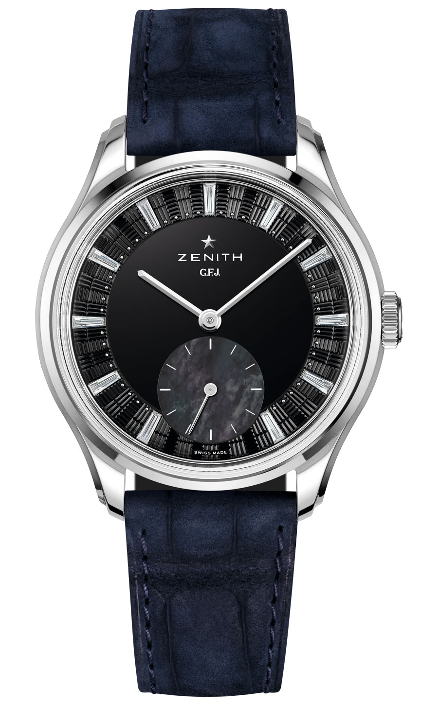 Les deux versions adoptent un boîtier en or rose, proposé en 36,5 mm pour 7,41 mm d’épaisseur et en 40 mm pour 8,06 mm. Le cadran argenté grainé est associé à une minuterie et à des chiffres arabes bleuis, ainsi qu’à des aiguilles en or bleuies de type œil de perdrix. Le compteur de petite seconde, positionné perpendiculairement à 3 heures, conserve une lecture distincte de celle des heures et minutes, restées inclinées selon l’axe à 45 degrés.