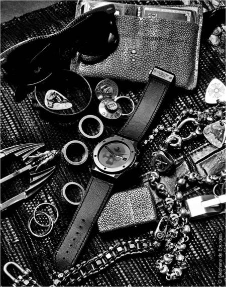 Cette montre Hublot, surprenante, c’est la parfaite fusion d’un esprit rebelle avec un sens de l’élégance sûr et audacieux qui n’oublie pas pour autant les vanités, symbole de l’impermanence humaine, nous rappelant la fragilité et la brièveté de la vie, et qu’il faut en saisir pleinement chaque instant …