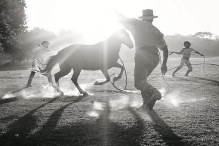 Le “gaucho“ adulte en action réalisant une « jineteada », un rodéo à cheval. La photo a été prise dans un corral authentique (enclos). Inlassablement, le cavalier tombe et remonte sur son cheval pour le chevaucher à nouveau. Cela dure des heures, à s’amuser et resserrer les liens avec leurs acolytes.