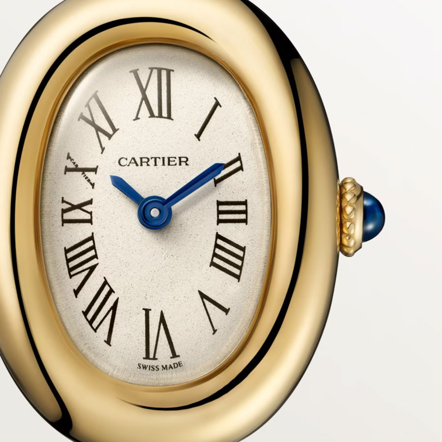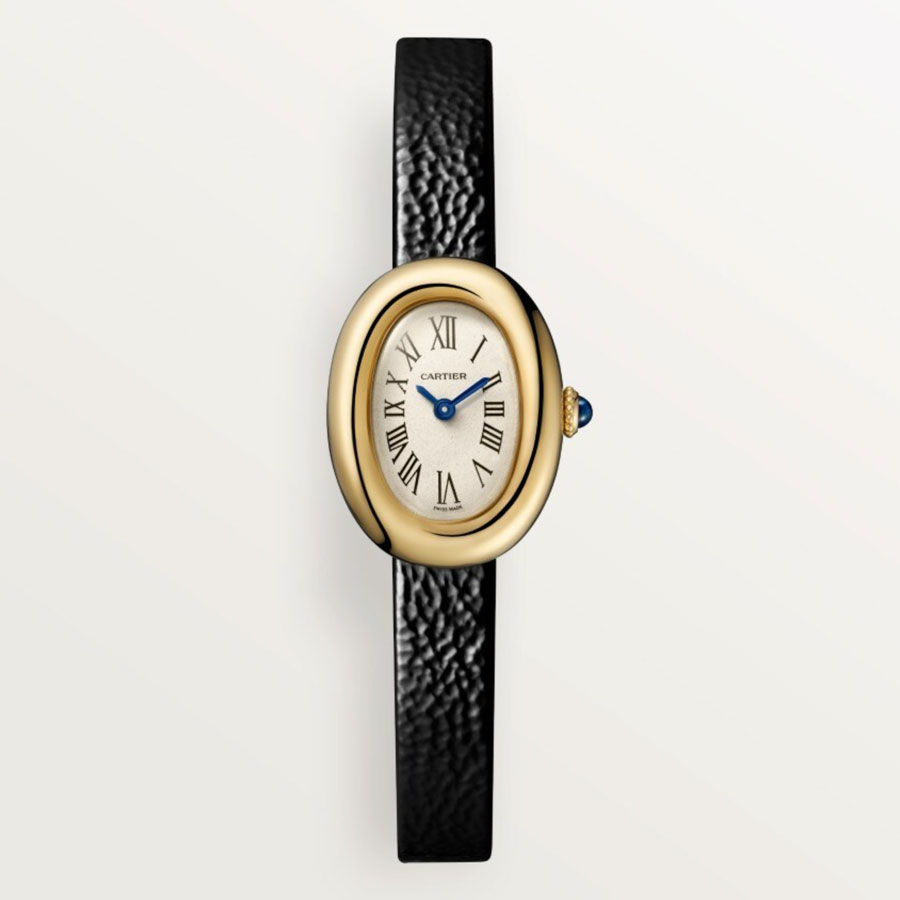 Mini, mais maxi allure : la vague des petites montres continue de déferler, et Cartier surfe en tête avec sa mythique Baignoire. Icône depuis plus d’un siècle, l’ovale sensuel de cette montre-bijou se réinvente dans un format miniature qui capte l’air du temps. Sur ce boîtier réduit à l’essentiel, la lunette godronnée s’impose, sculpturale, comme un bijou à part entière.