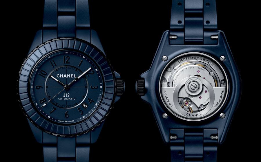 Cette nouvelle matière, à la fois mate, profonde et inrayable, devient la signature de la dernière J12 Bleu, une montre qui pousse l’expertise horlogère et la créativité à leur point de fusion. Les contrastes se jouent comme des effets de scène : le bleu mat répond à l’acier traité noir, les reflets vernis s’opposent aux textures minérales. A l’image de cette J12 Bleu Calibre 12.1 en 38 mm de diamètre, la pièce s’impose comme une déclaration stylistique autant qu’un manifeste technique et affirme immédiatement son identité. Au dos, un fond en saphir gravé “LIMITED EDITION” rappelle son exclusivité. La lunette fixe en acier traité noir est soulignée par une bague en céramique bleu mat au motif baguette, tandis que le cadran bleu mat verni est ponctué d’index en vernis noir.