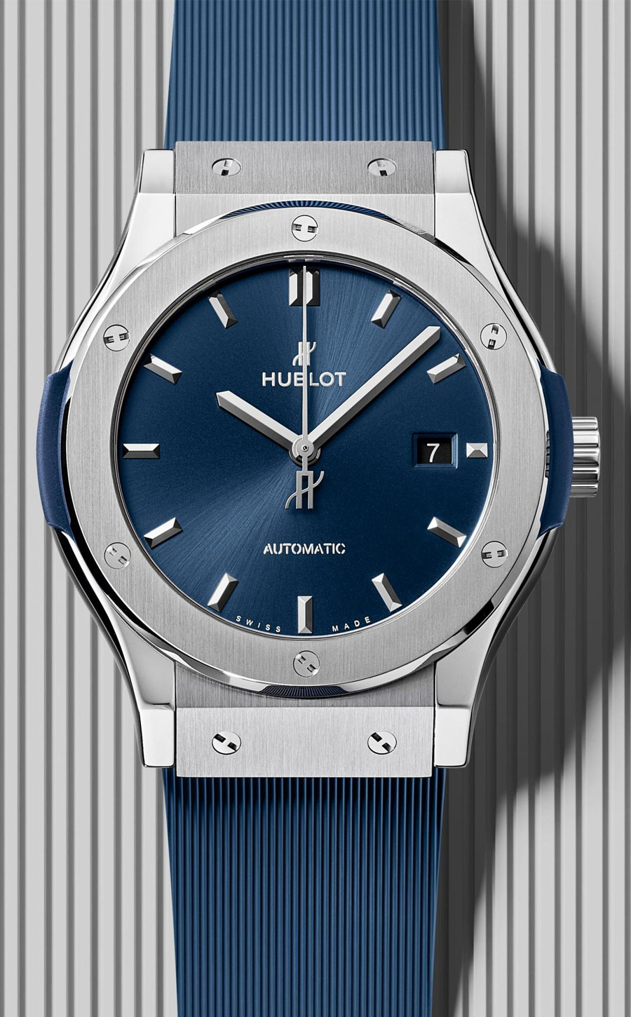 Consulter les détails techniques de la Classic Fusion Titanium Blue en 42 mm.