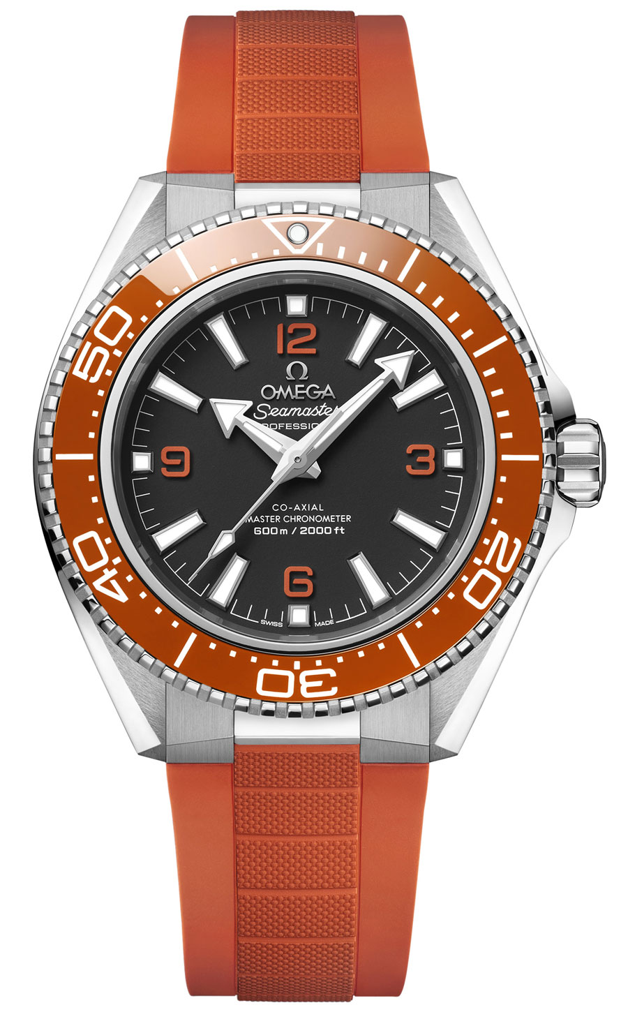 Sur le cadran noir mat, Omega modernise subtilement le visage de sa plongeuse : aiguilles flèche, index massifs en Super-LumiNova et désormais chiffres arabes ajourés, plus carrés, plus nets, en écho à la Planet Ocean originelle. L’ensemble gagne en cohérence stylistique, en particulier avec les nouveaux bracelets redessinés, plus fins, intégrés au boîtier, et réglables sur six positions. Acier ou caoutchouc — dont un orange vitaminé – tous conservent l’extension de plongée.