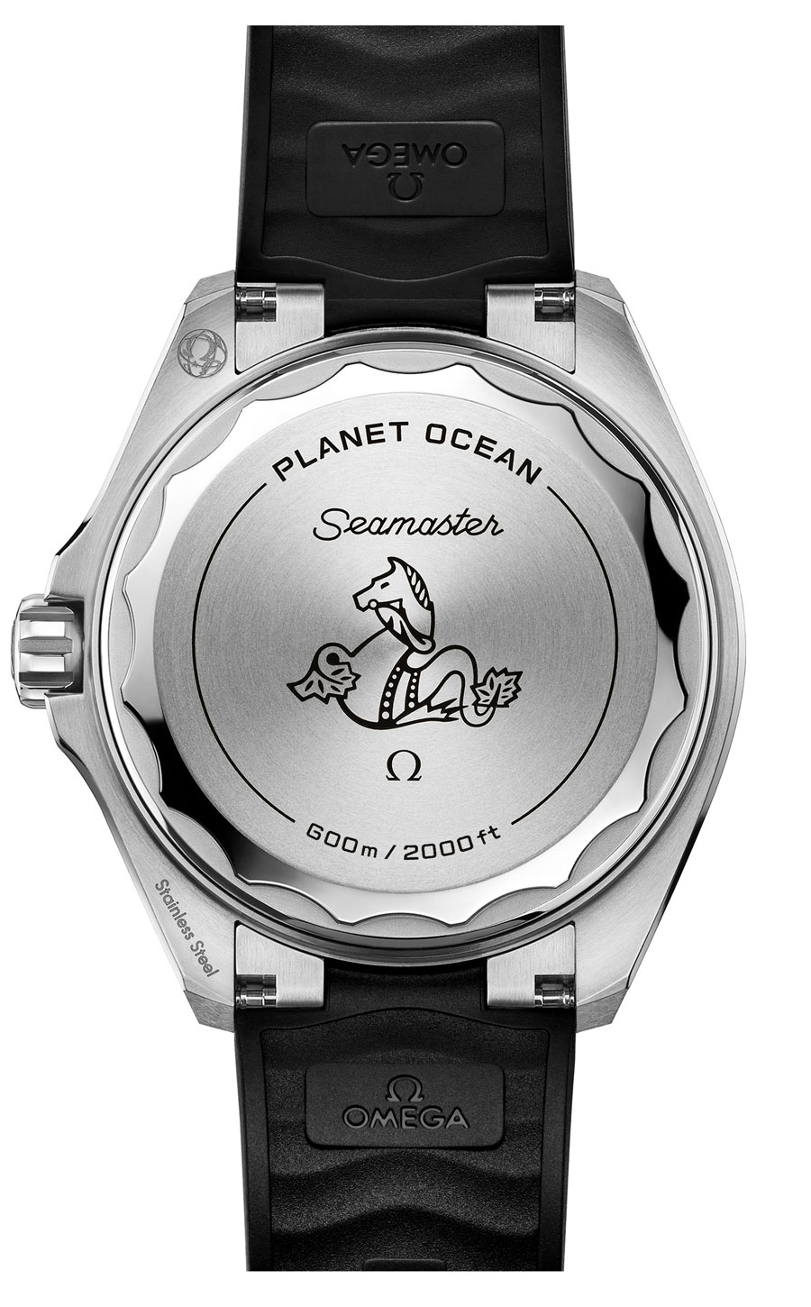 Fond de boîtier en titane gravé de l’hippocampe Omega.