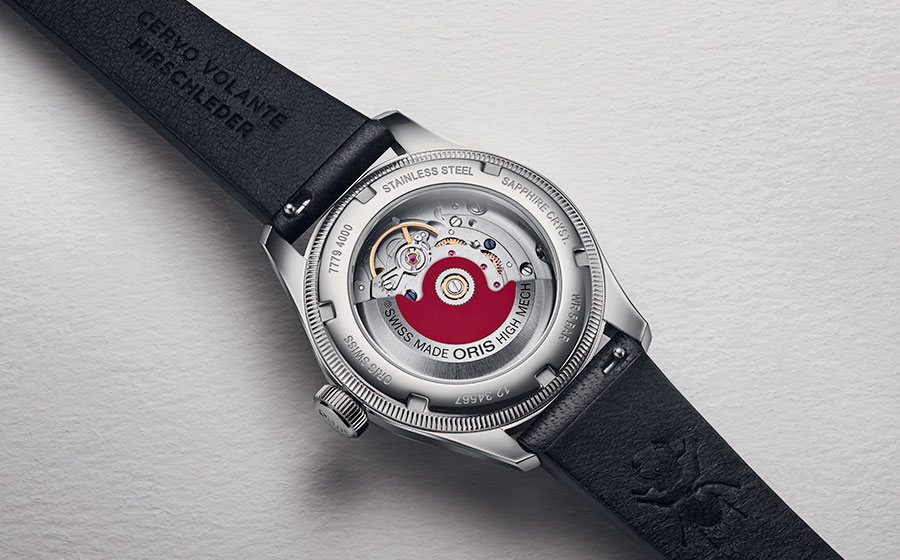 À l’intérieur, le calibre automatique Oris 754 délivre 41 heures de réserve de marche, avec stop-seconde et date instantanée. Visible au dos à travers un fond transparent, il est équipé du caractéristique rotor rouge. Le bracelet en cuir de cerf durable Cervo Volante apporte une dimension responsable, fidèle aux engagements contemporains d’Oris.