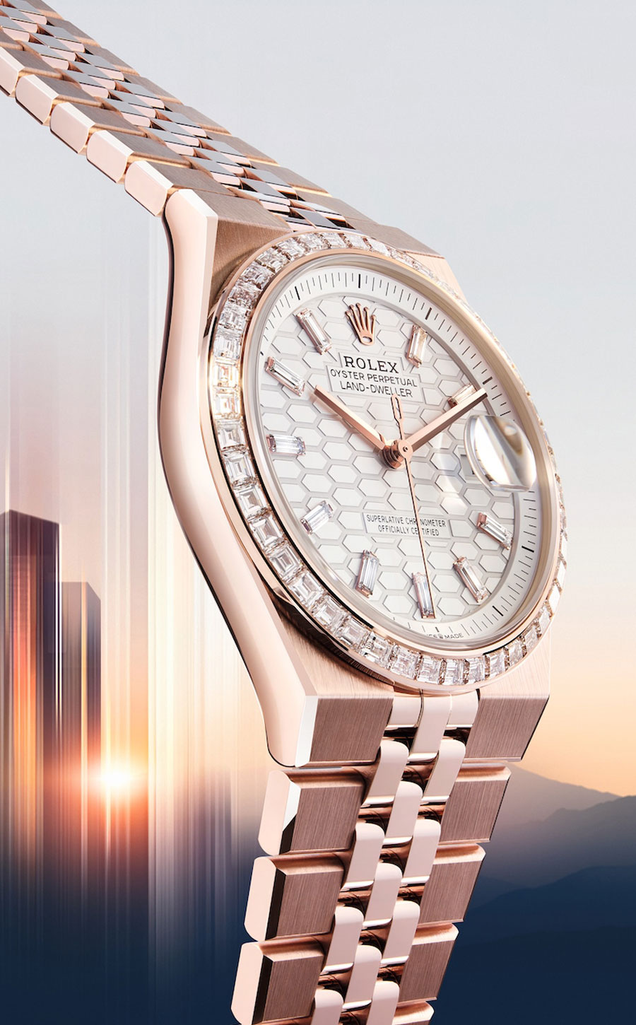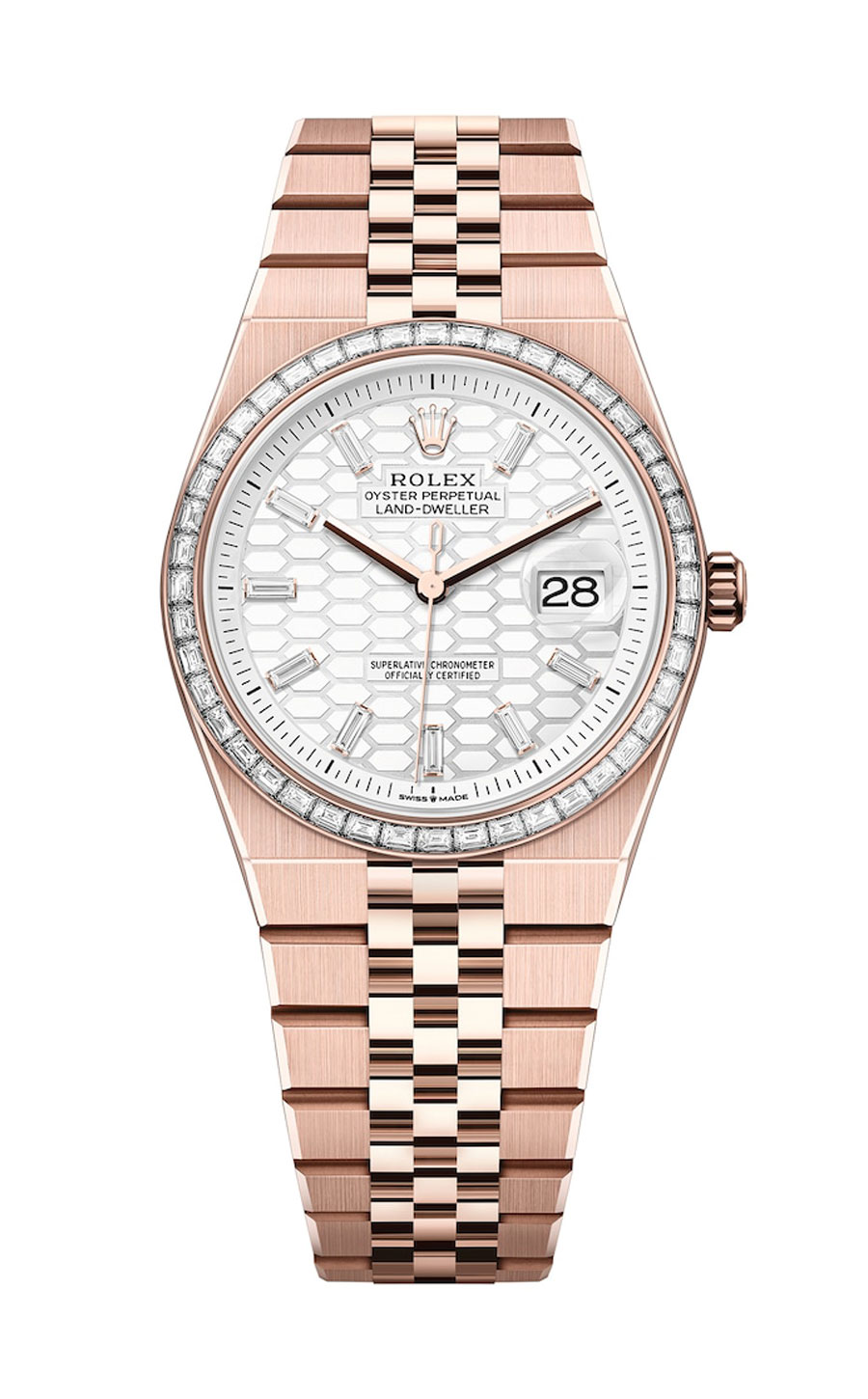 Consulter la fiche technique de la Rolex Land-Dweller en or Everose et diamants – 90 850 euros