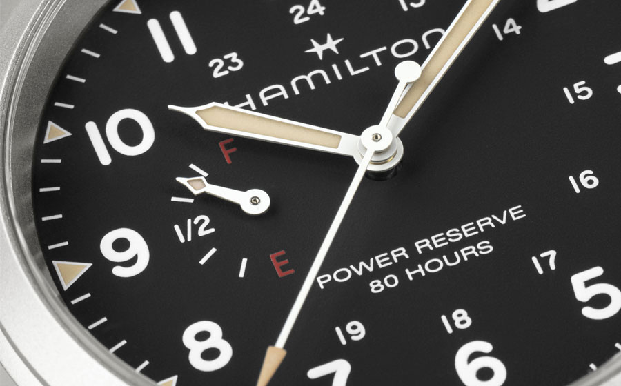 La marque horlogère présente la nouvelle Khaki Field Power Reserve Mechanical, première montre de la collection à afficher une réserve de marche sur le cadran. Un détail esthétique ? Pas seulement. Ici, l’indication devient une véritable complication technique rappelant la vocation utilitaire des montres militaires dont elle s’inspire.