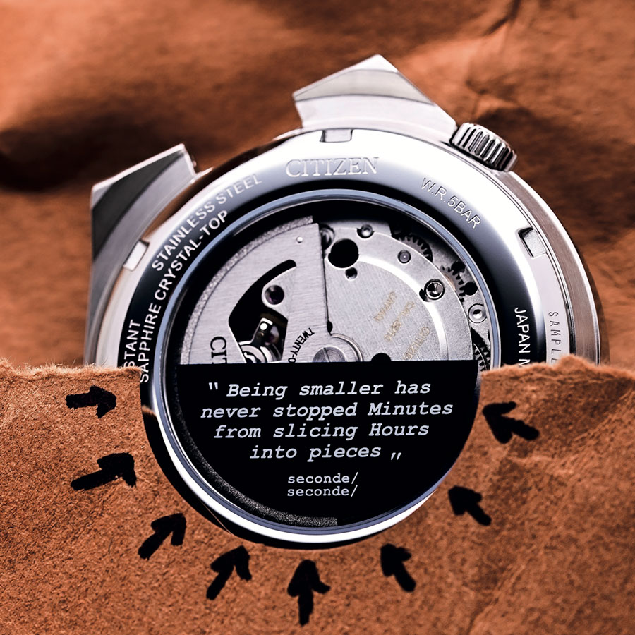 Il y a des montres qui donnent l’heure. Et puis il y a celles qui découpent le temps. Avec la Tsuyosa x seconde/seconde/, Citizen signe un modèle événement : la toute première collaboration issue de sa collection emblématique, et pas avec n’importe qui. Aux commandes créatives, l’artiste français Romaric André, alias seconde/seconde/, connu pour bousculer l’horlogerie avec une ironie affûtée et un sens du concept redoutable. Résultat ? Une pièce qui tranche, au sens propre comme au figuré.