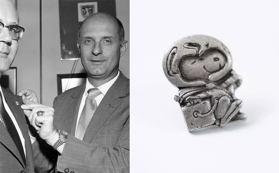 Omega recevant le « Silver Snoopy Award » des mains de l’astronaute Thomas Stafford en 1970.