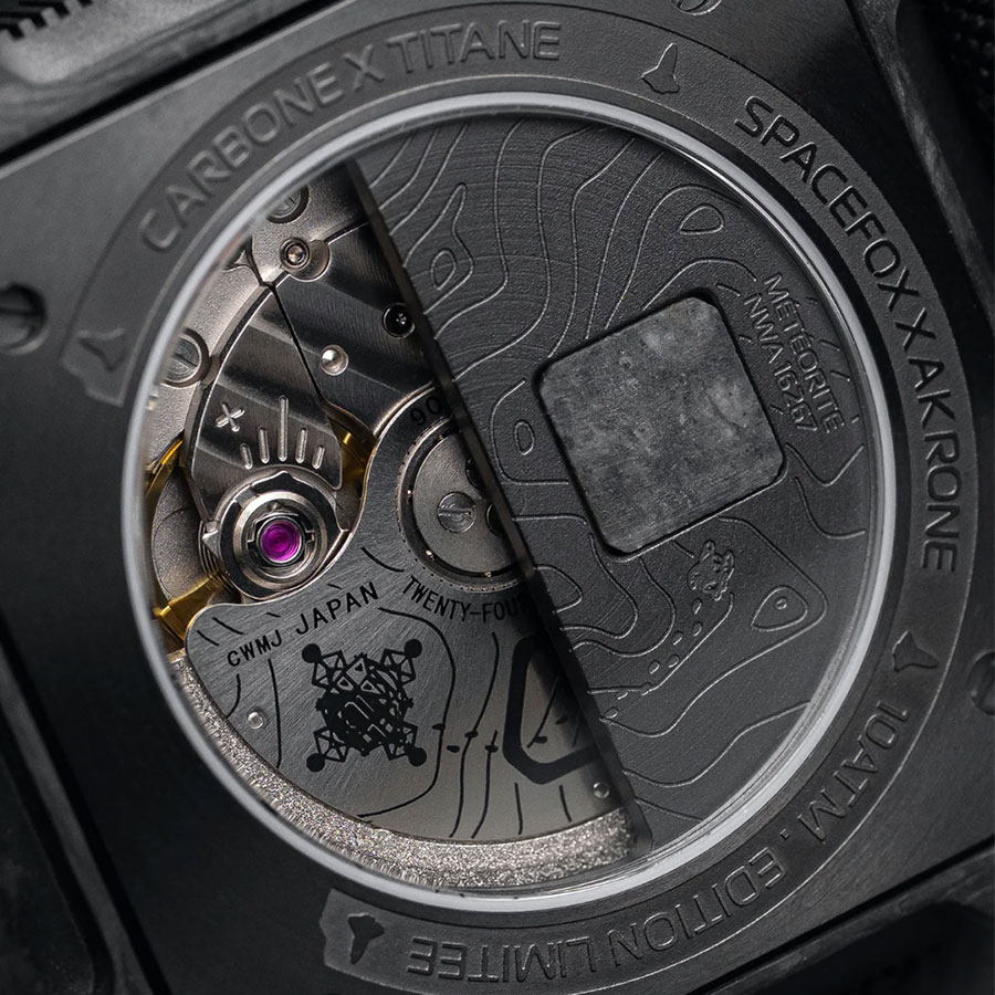 Au cœur du cadran, la complication Worldtimer permet de lire en un clin d’œil l’heure dans les grandes villes du globe. Pas besoin d’un doctorat en horlogerie : l’affichage est intuitif, fluide, et rappelle que le temps, aujourd’hui, n’a plus vraiment de frontières. Une fonction pratique, élégante et idéale pour ceux qui jonglent entre fuseaux horaires. Mais la Moon GMT XK1 ne s’arrête pas là. Son véritable coup d’éclat se cache au verso de la boîte : un fragment authentique de météorite lunaire, certifié et classifié, incrusté dans chaque montre. Oui, un vrai morceau de Lune. De quoi relativiser les retards de train et donner une tout autre dimension au concept de “garder les pieds sur terre”.