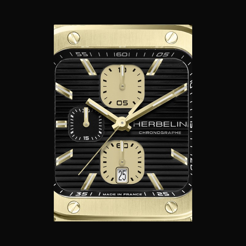 Avec son boîtier carré imposant et son design identifiable, Cap Ca- marat Square Chronographe in- carne l’esprit sportif et affirmé de la maison HERBELIN.