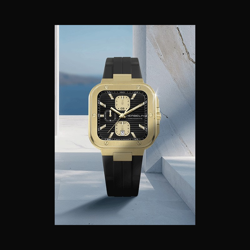 Élégant, robuste et affirmé, Cap Camarat Square Chronographe incarne une identité unique dans l’univers du sport-chic. Véritable pièce de caractère, conçue et assemblée dans les ateliers HERBELIN, il séduira les passionnés de design contempo- rain.