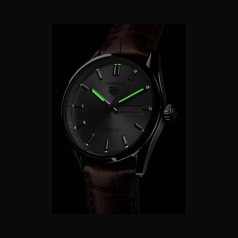 Les modèles TAG Heuer Carrera de 39 mm et 41 mm de diamètre sont équipés du mouvement automatique Calibre 5 et d’un nouveau boîtier dont les cornes ont été affinées. Ces montres sont montées sur le nouveau bracelet avec maillons en forme de H pour la version acier, et sur un bracelet en cuir d’alligator brun pour la version cuir. La lisibilité du cadran constitue toujours un atout essentiel, grâce notamment à des aiguilles plus imposantes et l’intégration d’index plus fins. La Carrera Date 39 mm affiche la date à 6 heures et, sur la Day Date 41 mm, le guichet date est finement encadré.