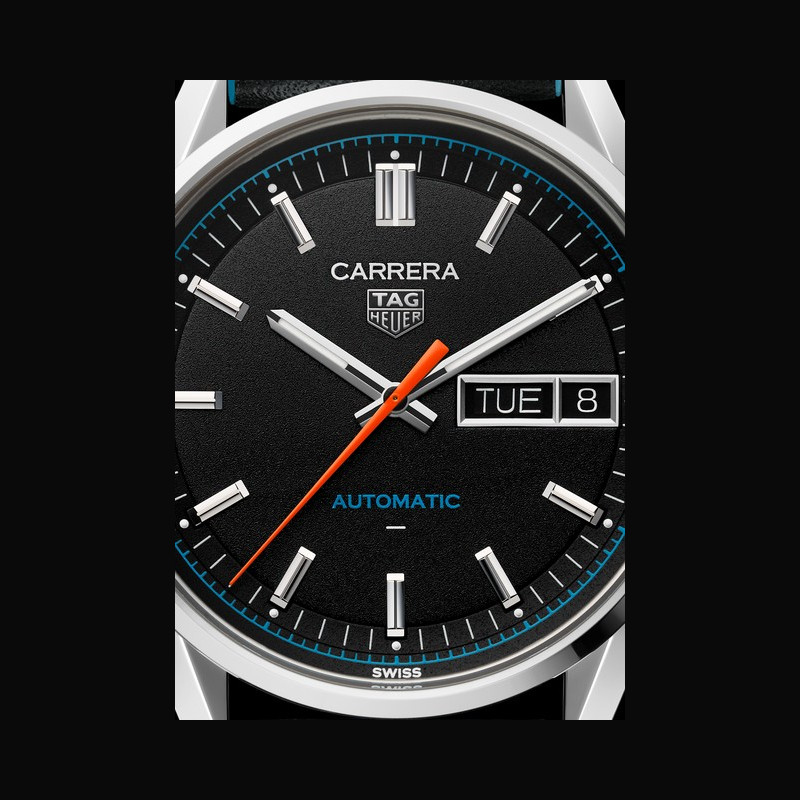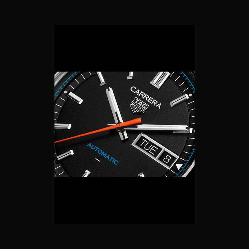 Si la silhouette de la TAG Heuer Carrera Day-Date est immédiatement reconnaissable, TAG Heuer a ajouté des améliorations discrètes, mais percutantes. Le design tridimensionnel du cadran a été soigneusement conçu et chaque détail améliore sa lisibilité, à l’image des marquages plus grands et plus espacés, tout en conservant un style élégant. La fonctionnalité jour-date est le point focal de cette montre et sur certains modèles, le disque de date ton sur ton s’intègre naturellement au cadran, souligné d’une indication triangulaire pour une touche espiègle de modernité.