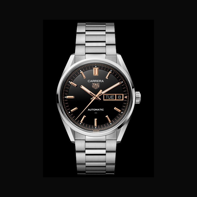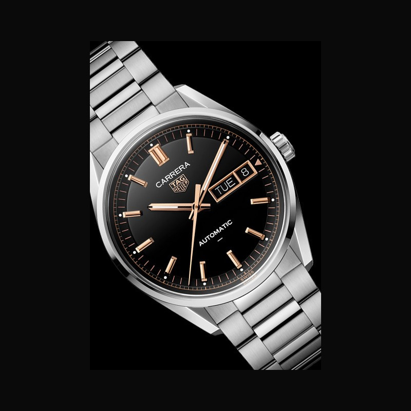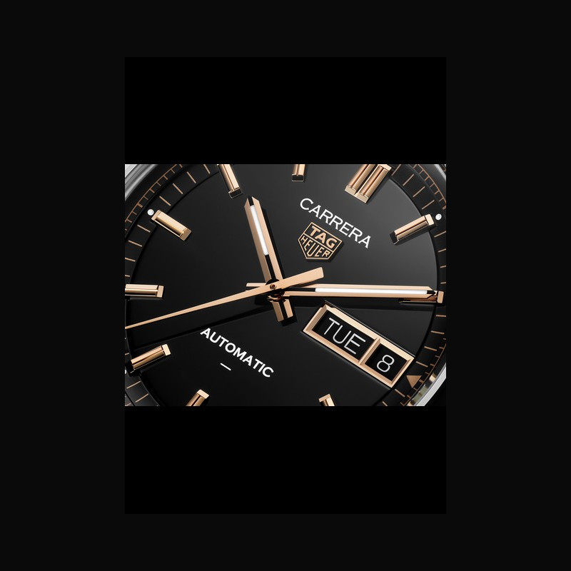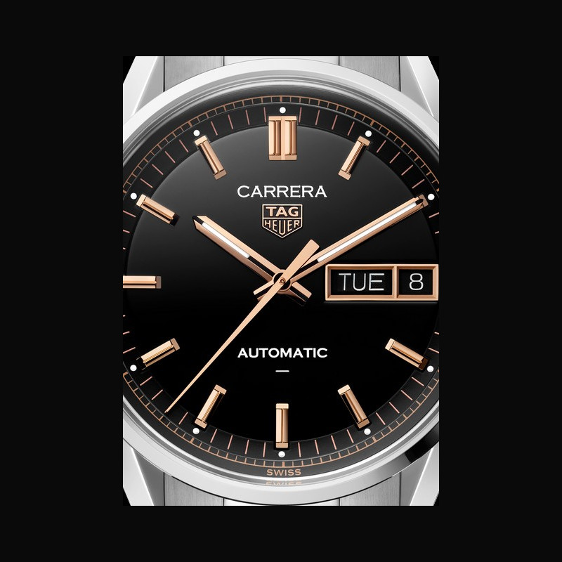 Si la silhouette de la TAG Heuer Carrera Day-Date est immédiatement reconnaissable, TAG Heuer a ajouté des améliorations discrètes, mais percutantes. Le design tridimensionnel du cadran a été soigneusement conçu et chaque détail améliore sa lisibilité, à l’image des marquages plus grands et plus espacés, tout en conservant un style élégant. La fonctionnalité jour-date est le point focal de cette montre et sur certains modèles, le disque de date ton sur ton s’intègre naturellement au cadran, souligné d’une indication triangulaire pour une touche espiègle de modernité.
