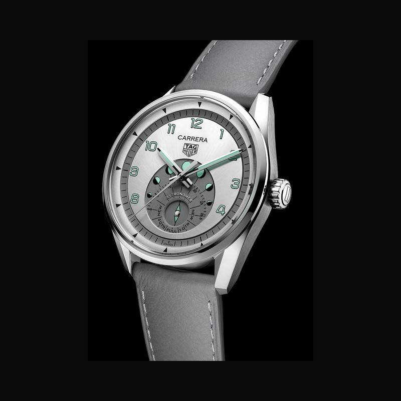 Le premier modèle, introduit dans la collection TAG Heuer Carrera, associe clarté et contraste audacieux dans une itération en acier inoxydable, associée à un cadran argenté. Son rehaut noir et son disque noir pour les phases de la lune évoquent l’immensité de du cosmos, tandis que ses détails gris ajoutent une touche de mouvement et d’atmosphère. Les aiguilles en plaqué rhodium sont dotées de la technologie Super-LumiNova® blanche pour une lisibilité optimale. Le bracelet, réinterprétation moderne du design iconique en grain de riz de la Maison remontant aux années 1960, relie la montre à l’histoire d’élégance et d’intention de TAG Heuer. Sa présence visuelle et sa forme fluide créent une silhouette à la fois affirmée et intemporelle.