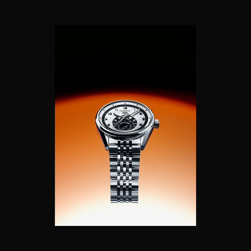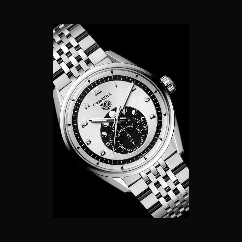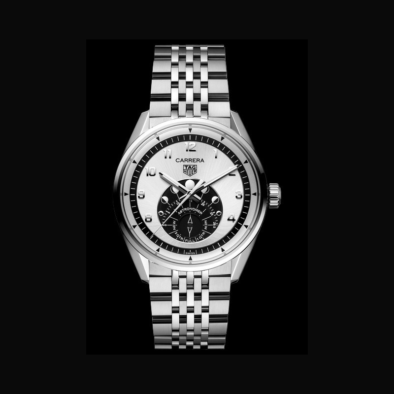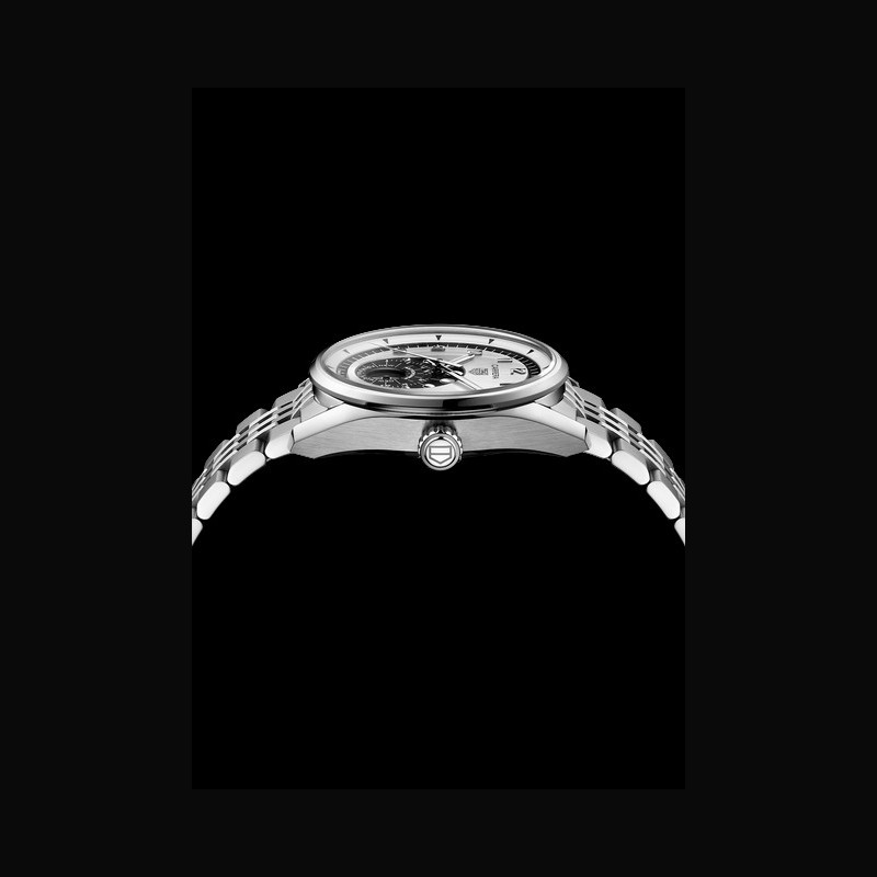 Le premier modèle, introduit dans la collection TAG Heuer Carrera, associe clarté et contraste audacieux dans une itération en acier inoxydable, associée à un cadran argenté. Son rehaut noir et son disque noir pour les phases de la lune évoquent l’immensité de du cosmos, tandis que ses détails gris ajoutent une touche de mouvement et d’atmosphère. Les aiguilles en plaqué rhodium sont dotées de la technologie Super-LumiNova® blanche pour une lisibilité optimale. Le bracelet, réinterprétation moderne du design iconique en grain de riz de la Maison remontant aux années 1960, relie la montre à l’histoire d’élégance et d’intention de TAG Heuer. Sa présence visuelle et sa forme fluide créent une silhouette à la fois affirmée et intemporelle.