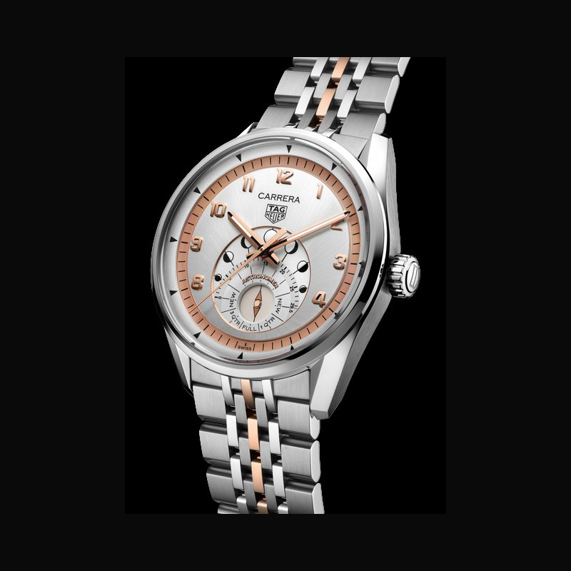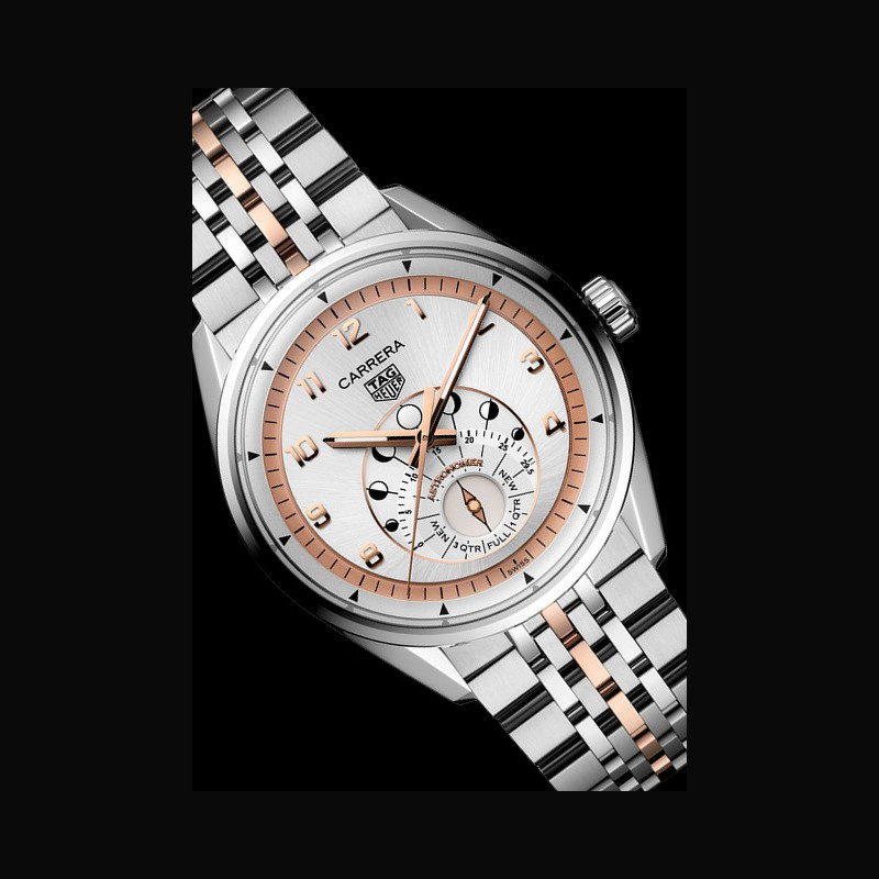 Le premier modèle, introduit dans la collection TAG Heuer Carrera, associe clarté et contraste audacieux dans une itération en acier inoxydable, associée à un cadran argenté. Son rehaut noir et son disque noir pour les phases de la lune évoquent l’immensité de du cosmos, tandis que ses détails gris ajoutent une touche de mouvement et d’atmosphère. Les aiguilles en plaqué rhodium sont dotées de la technologie Super-LumiNova® blanche pour une lisibilité optimale. Le bracelet, réinterprétation moderne du design iconique en grain de riz de la Maison remontant aux années 1960, relie la montre à l’histoire d’élégance et d’intention de TAG Heuer. Sa présence visuelle et sa forme fluide créent une silhouette à la fois affirmée et intemporelle.