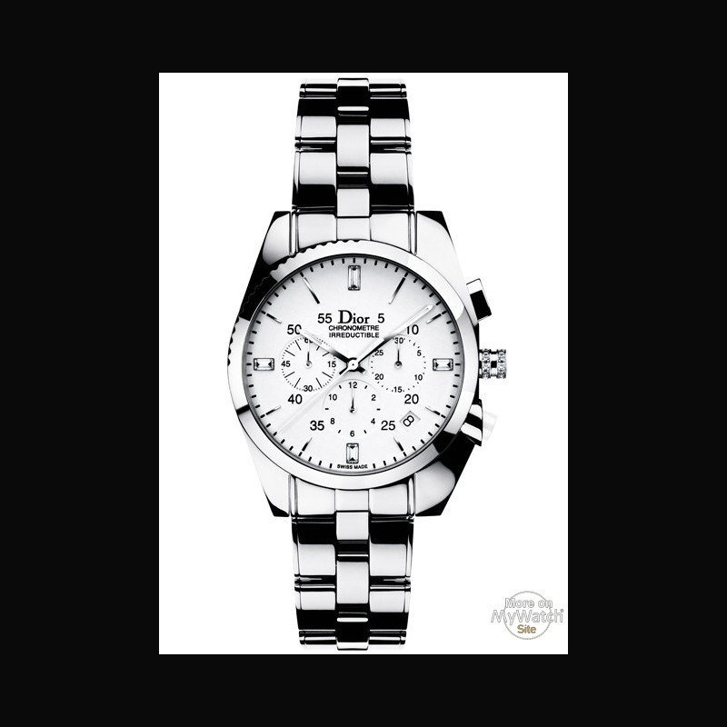 | + Plus de caractéristiques : | Mouvement Calibre : Irréductible par Zénith pour Dior 278 composants Fréquence : 36 000 alternances par heure Réserve de marche de 50 heures Boîtier Bouton poussoir blanc à 4h Fond cristal saphir translucide blanc. serti d'un diamant Cadran Aiguilles des heures et minutes luminescentes Boucle double déployante en or blanc Sertissage 31 diamants (0.36 carat) Or Or blanc 750/1000e palladium 210 |