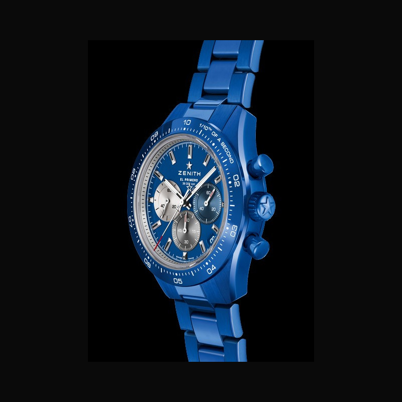 Pour célébrer son 160ᵉ anniversaire, ZENITH dévoile cette teinte exclusive de céramique bleue sur trois de ses chronographes emblématiques. Produits en éditions limitées de 160 exemplaires, ces modèles peuvent être acquis séparément ou réunis dans un coffret anniversaire exclusif, qui peut également inclure la G.F.J.
