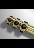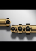 | + Plus de caractéristiques : | Mouvement Quartz Réserve de marche : 3-5 ans Nombre de composants : 38 Rubis : 3 Boitier Or jaune 18K satiné et poli Cadran Laqué noir et poli Bracelet / Boucles Caoutchouc lisse noir Boucles déployante spéciale en or jaune 18K et titane plaqué noir |