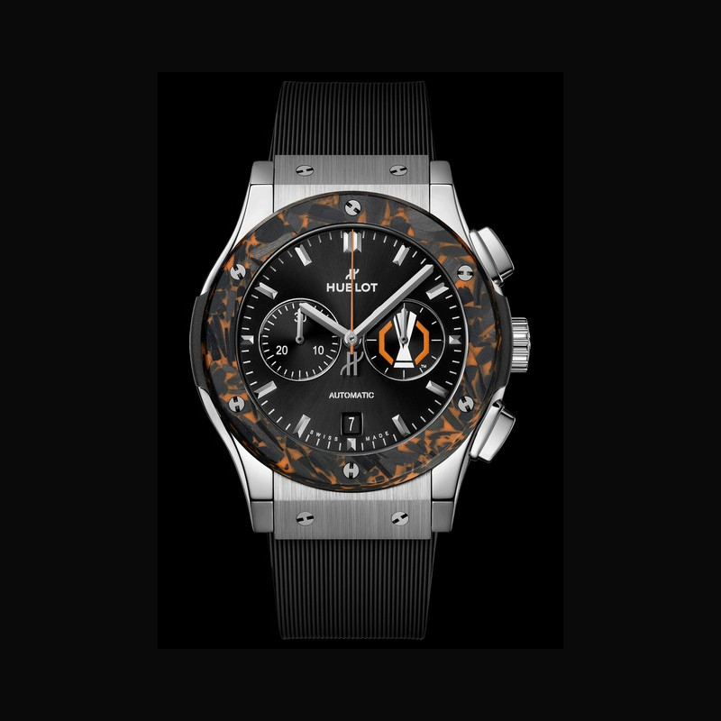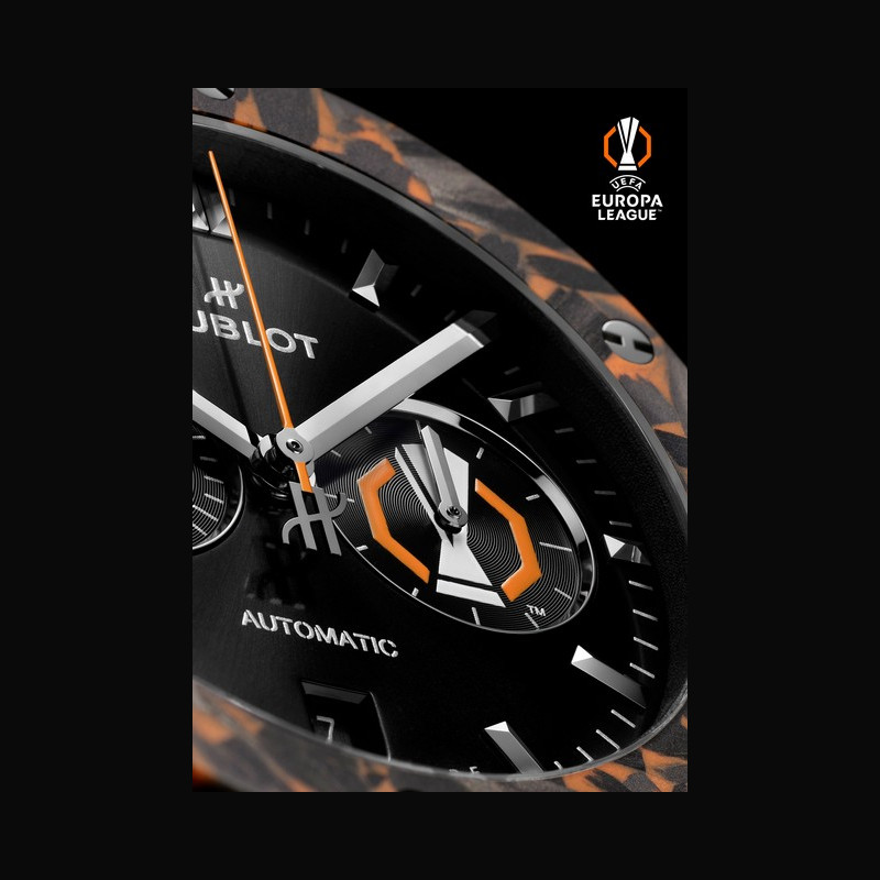 La Classic Fusion Chronograph UEFA Europa League Titanium Carbon est disponible dans une sélection de points de vente Hublot et en ligne sur hublot.com.