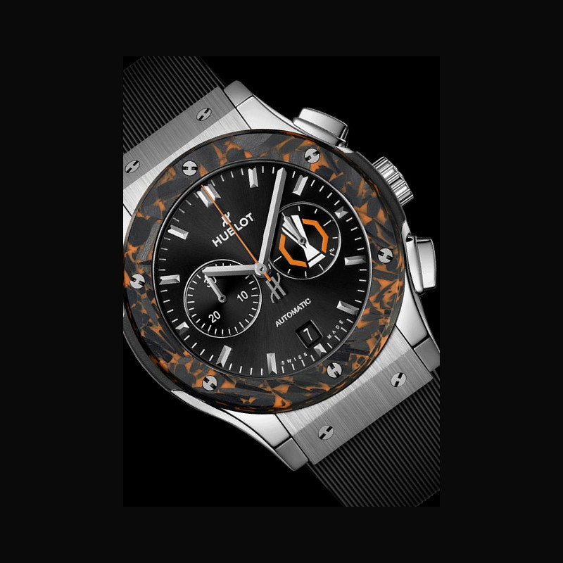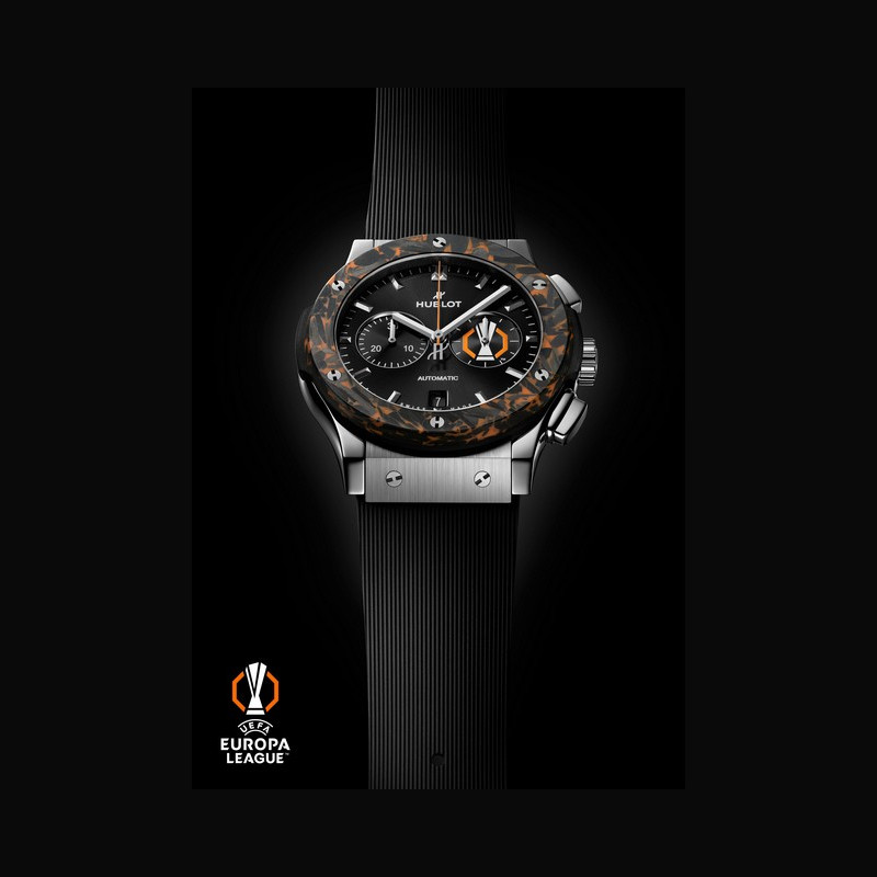 HUBLOT PRÉSENTE LA CLASSIC FUSION CHRONOGRAPH UEFA EUROPA LEAGUE TITANIUM CARBON
