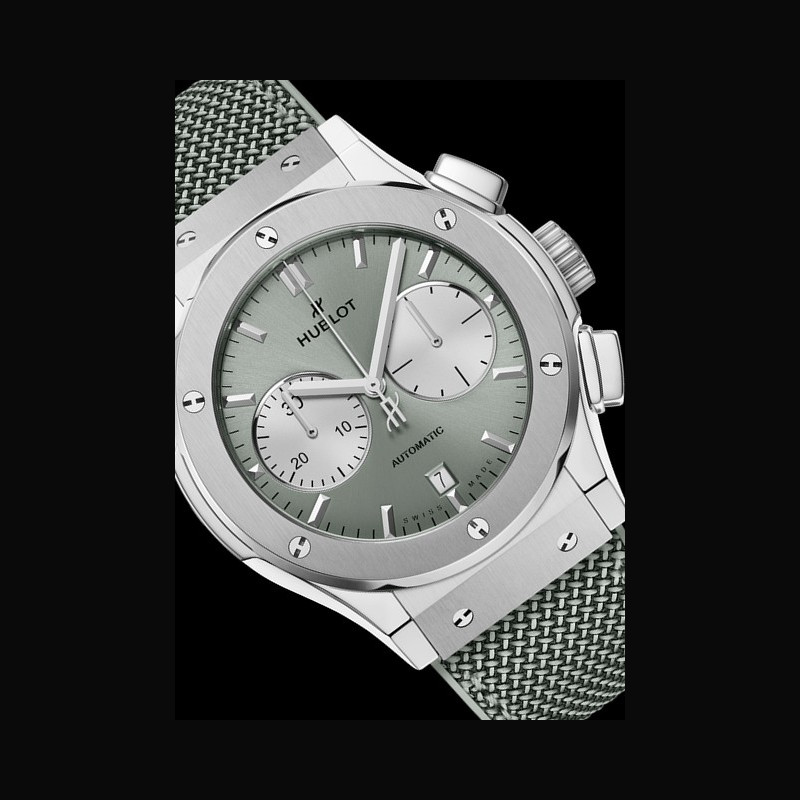 | Plus de caractéristiques : | Mouvement HUB1143 Mouvement Chronographe à remontage automatique Date : guichet à 6 h Nombre de composants : 280 Rubis : 59 Fréquence (Hz) : 4 Hz (28'800 Alt/h) Réserve de marche : env. 48 h Boitier Titane poli et satiné Cadran Finition satinée soleil vert sauge Bracelet / Boucles Caoutchouc vert sauge avec tissu vert sauge Fermoir à boucle déployante en acier inoxydable |