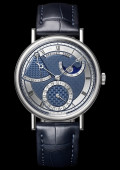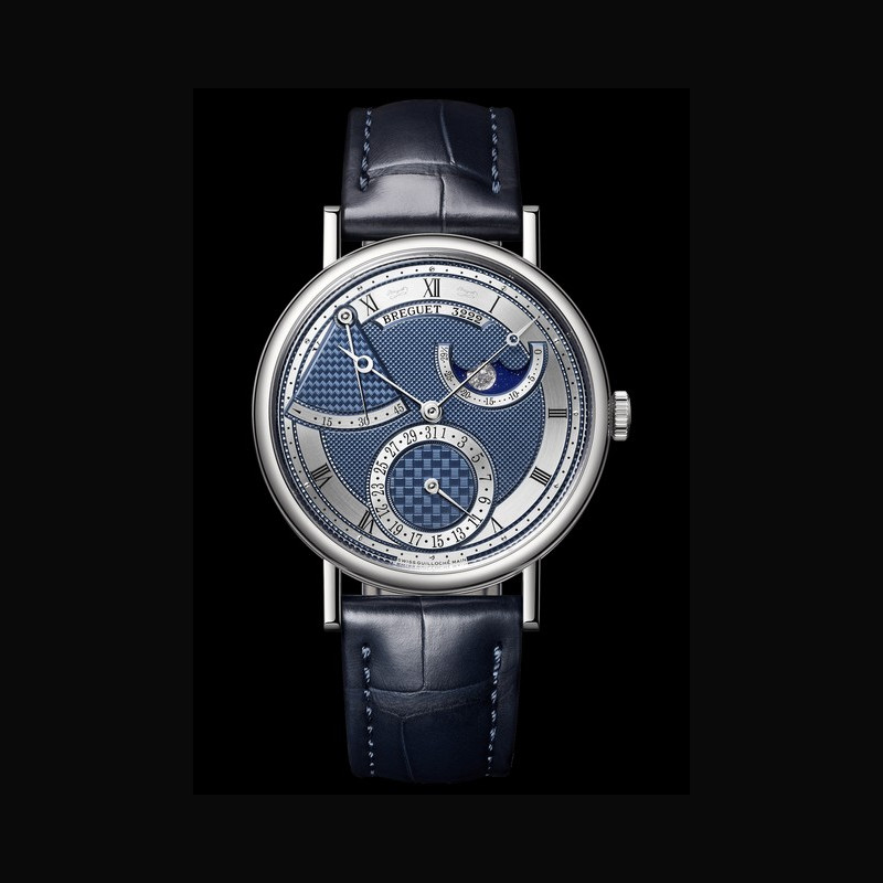 | Plus de caractéristiques : | Mouvement Mouvement mécanique extra-plat à remontage automatique décoré de « côtes de Genève » Calibre 502.3 DR1 Numéroté et signé Breguet 12 lignes Épaisseur 3,65mm 37 rubis 256 composants Réserve de marche de 45 heures Balancier Breguet Échappement à ancre en ligne inversée avec cornes en silicium Spiral plat en silicium Boitier Ronde en or blanc 18 carats à carrure finement cannelée Cadran Bleu en or 18 carats Individuellement numéroté et signé Breguet Indication des phases et âge de la lune à 2h Indication de la date à 6h Indication de la réserve de marche entre 10h et 11h Bracelet / Boucles Alligator bleu avec boucle déployante en or blanc |
