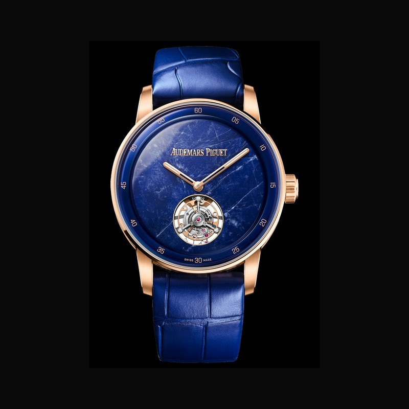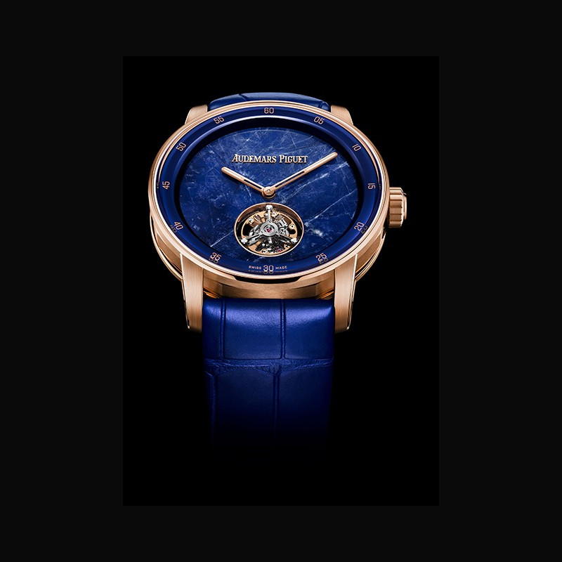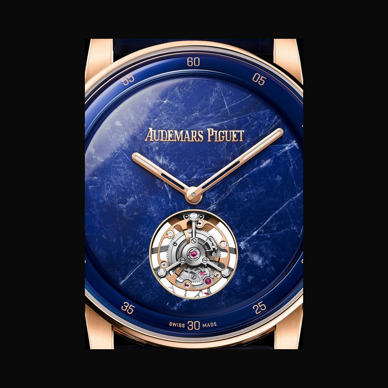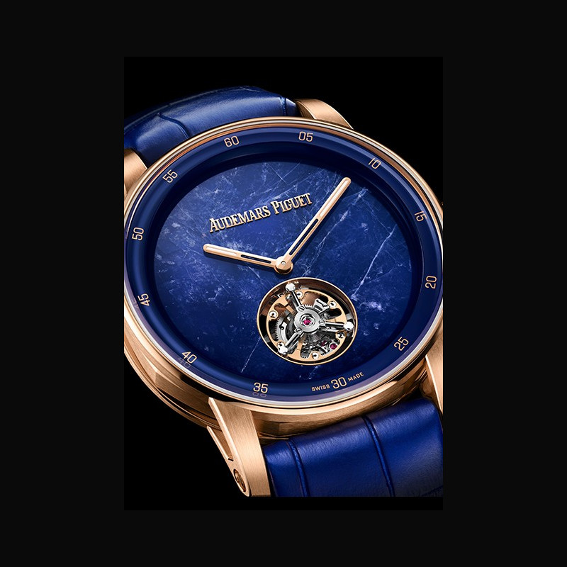 Audemars Piguet commence à explorer le potentiel esthétique des cadrans en pierre naturelle dans les années 1960. Exigeant un savoir-faire exceptionnel, chaque cadran est réalisé à partir d'une fine couche de pierre, minutieusement taillée et polie pour préserver son intégrité tout en révélant son éclat naturel. Les variations de tons, les veinures et la richesse de texture inhérentes à chaque pierre sont le gage qu’aucun cadran n’est identique. Au-delà de leur rareté et de leur beauté physique, les pierres précieuses sont depuis longtemps porteuses de significations symboliques, en résonance avec les multiples dimensions de l’expérience humaine. On leur attribue également des propriétés énergétiques uniques : elles auraient des bienfaits sur l'équilibre émotionnel, le bien-être et l’assurance. Pour ce trio exclusif, Audemars Piguet a soigneusement sélectionné des pierres précieuses du monde entier : la racine de rubis de Tanzanie, associée à la vitalité et à la protection ; la sodalite bleue du Brésil, symbolisant le calme et la clarté ; et la malachite verte de Zambie, réputée pour favoriser la croissance et la transformation. Pour beaucoup, ces matériaux sont plus que décoratifs : ils ont une portée émotionnelle, faisant de chaque montre à la fois un talisman et une merveille mécanique.