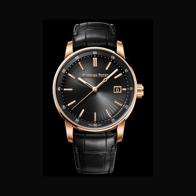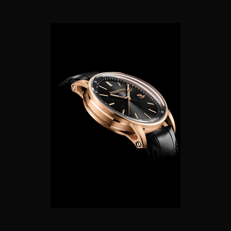 | Plus de caractéristiques : | Mouvement Calibre 5900 à remontage automatique Diamètre total 26,2 mm (11½ lignes) Épaisseur totale 3,9 mm Nombre de composants 188 Nombre de pierres 29 Réserve de marche minimum garantie 60 h Fréquence du balancier 4 Hz (28 800 alternances/heure) Boitier Boîte en or rose 18 carats Cadran Cadran signature noir Bracelet / Boucles Bracelet noir en alligator avec boucle ardillon en or rose 18 carats |