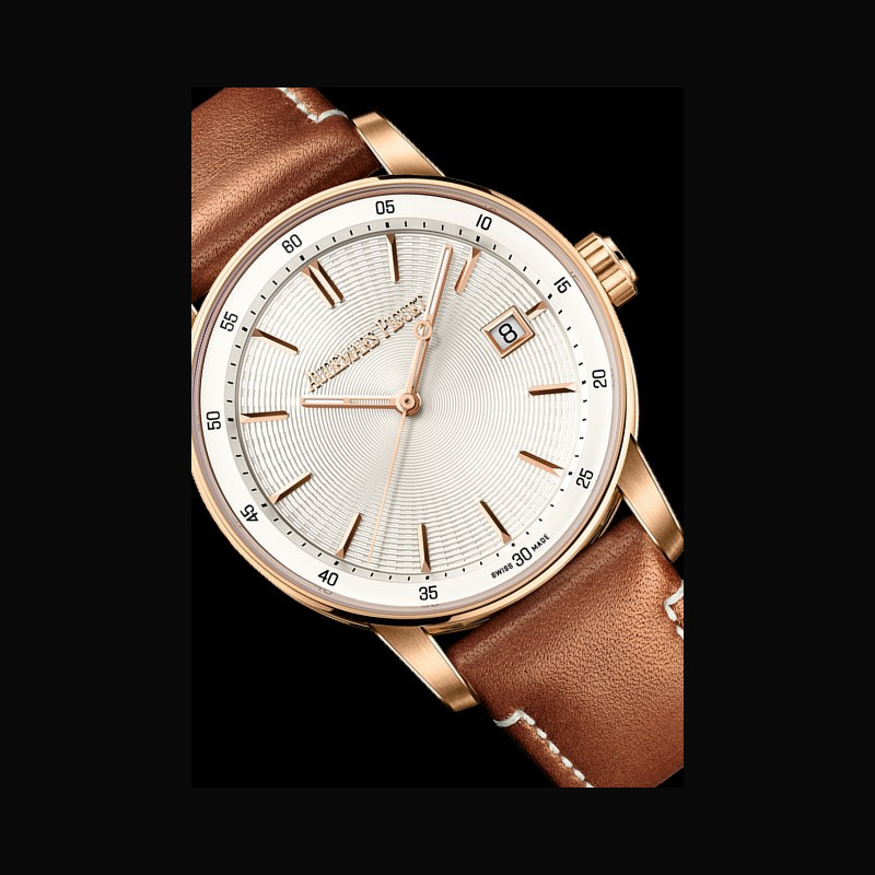 Créant un contraste esthétique à la fois élégant et chaleureux, les deux modèles affichent des teintes tantôt sombres et profondes, tantôt claires et lumineuses qui leur confèrent un aspect intemporel et fluide. Si la première référence est dotée d’un cadran noir assorti d’un bracelet en alligator, la seconde se pare d’un cadran argenté associée à un tout nouveau bracelet brun en cuir de veau bordé de coutures blanches. Les cadrans des deux garde-temps arborent le motif « signature » de la collection : des cercles concentriques évoquant les ondulations à la surface de l’eau, ponctués de fines cavités qui captent la lumière. Ce décor sur lequel se détachent les index et les aiguilles luminescentes en or rose 18 carats renforce la lisibilité, le confort et la modernité de ces modèles à l’architecture multifacette.