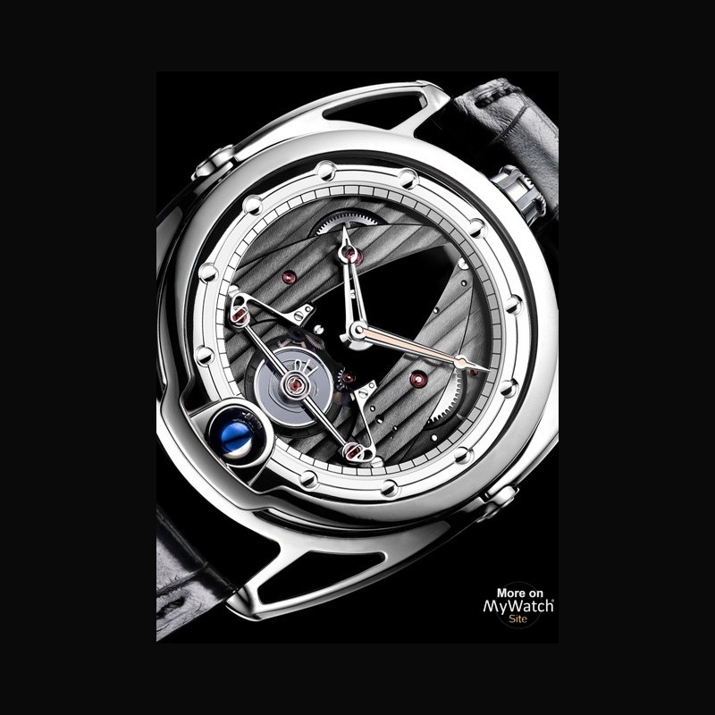 | Plus de caractéristiques : | Mouvement Empierrage : 36 Rubis Fréquence : 28'800 alternances par heure Réserve de marche : 6 jours - indicateur situé au dos de la montre Platine décorée et colimaçonnée à la main. aciers anglés et polis main. Côtes De Bethune Double barillet autorégulateur* - Les barillets sont spécifiquement réalisés pour diminuer les frictions et transmettre efficacement le maximum d’énergie Balancier silicium/palladium - spiral avec courbe terminale plate* - Grâce à sa légèreté. ce balancier permet de réduire les frottements mécaniques et délivre le rapport inertie / masse idéal. Le principe de la courbe terminale plate. placée sur le même plan que le spiral compense les décentrages et facilite sa fixation Système triple pare-chute* permet une réduction a minima des perturbations et une protection des pivots du spiral Phase de lune avec affichage tridimensionnel* exclusif à l'aide d'une sphère en platine et acier bleui tournant sur son propre axe avec une précision de 1 jour toutes les 122 années Fonctions : heures - minutes - indicateur de phases de lune sphérique à 6h - indication de la réserve de marche - indicateur de performance Boîtier de forme Titane grade 5 Attaches : berceaux mobiles* en titane grade 5 avec un système de pivotement. Leurs ressorts épousent la forme et les mouvements du poignet Glace : saphir avec double traitement antireflet 1800 Vickers Couronne : vissée à 12h – réglage en 2 positions Dos : ouvert - glace saphir avec double traitement antireflet 1800 Vickers - indicateur de réserve de marche horizontal avec une aiguille - roues en or rose Cadran Ttitane grade 5 poli et tour des minutes argenté - lecture d’une zone de meilleure performance située à 3h entre un point bleu et rouge Aiguilles : acier inoxydable poli miroir avec un insert en or rose Bracelet Cuir alligator extra souple avec boucle ardillon * Brevets et innovations de la Manufacture De Bethune |