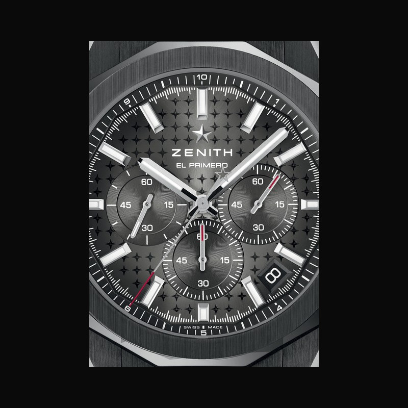 | + Plus de caractéristiques : | Mouvement Mouvement : El Primero 3600 automatique Fréquence : 36 000 A/h (5 Hz) Réserve de marche : 60 heures Chronographe automatique El Primero à roue à colonnes capable de mesurer et d’afficher le dixième de seconde Indication de la date Roue d’échappement et ancre en silicium Boitier Céramique noire Cadran Dégradé gris à motif ciel étoilé Bracelet / Boucles Bracelet en céramique noire avec boucle déployante double, et bracelet en caoutchouc noir avec boucle déployante en acier |