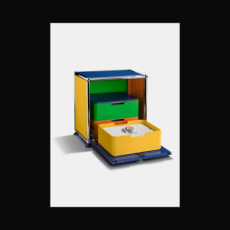 En imaginant ce qu’auraient pu créer ces deux maisons si leurs chemins s’étaient croisés à cette époque, ZENITH et USM réinterprètent aujourd’hui avec audace la première DEFY dans une version chronographe exclusive. Cette montre incarne des valeurs partagées : excellence suisse, design fonctionnel, et vision contemporaine du temps. Elle est accompagnée d’un coffret sur mesure imaginé par USM, véritable prolongement de cette rencontre entre horlogerie et design. Un dialogue harmonieux entre forme et fonction, pensé comme un manifeste du savoir-faire et de la créativité helvétique.